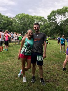 Hello and happy Monday! I’m coming in with the first recap in my “one race a month” summer/fall series. This past Saturday, J and I ran our first official trail race. This race was a fun hodgepodge of other firsts: my shortest race ever (at 2.35 miles), my first time running twice in one day, my first evening race, and my first (very minor) race injury. More on that in a moment!