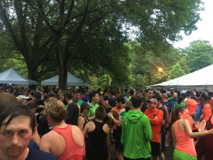Rewinding back to Saturday morning, I started the day with 8 easy miles with some of the Oiselle girls. Knowing the race was so short, I wanted to get a long-ish run done in the morning. It was fantastic to do it with friends, especially since the day was incredibly humid and the run was a bit of a slog to get through. After a shower and a power wedding planning session, J and I headed over to JP to stroll around Porchfest. From there we zipped down to the train and rolled out to the end of the orange line, where we boarded a quick shuttle bus to the Stone Zoo/race start. Bib pickup and bag check were quick and easy and porto potty lines were short, so we were off for a warm-up jog within 15 minutes. The humidity was pretty hot and heavy at the point (literally) so we weren’t particularly surprised to line up at the start line just as the skies opened up and the rain began to pour down. The first tiny bit of doubt crossed my mind at this point, as I glanced down at my relatively well-worn sneakers…