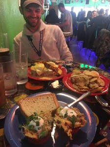 After taking the requisite photos we grabbed some post-race snacks (there was everything from pizza to a Mexican rice dish to squash soup and apple cider!) and then went back to our hotel for a hot tub dip and shower before tucking in at one of our favorite brunch spots, The Friendly Toast. Pro tip–they have an app you can use to skip the wait–our table was ready less than 10 minutes after we arrived! SO necessary.